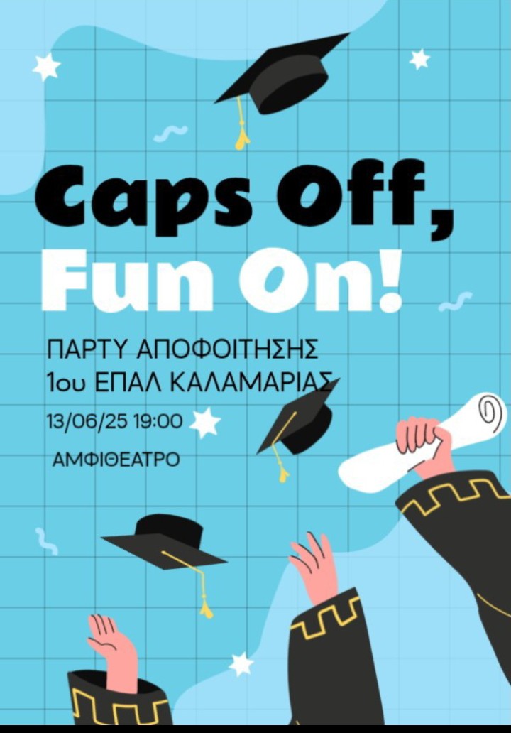 Σας προσκαλούμε στην γιορτή αποφοίτησης που θα γίνει την Παρασκευή 13/06/2025 και ωρα 19:00 στο αμφιθέατρο του σχολείου.